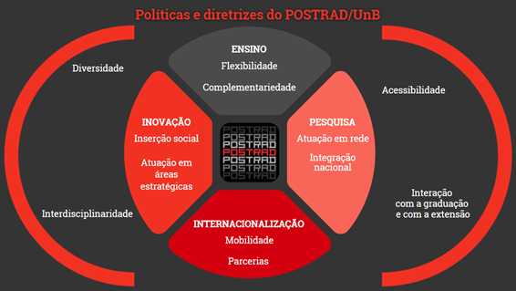 É importante salientar o caráter transversal de algumas diretrizes estratégicas do POSTRAD, tais como a interdisciplinaridade, a flexibilidade, a diversidade e a acessibilidade, que permeiam todas as esferas de atuação do Programa e estão relacionadas a outras políticas constantes no PDI, a saber, a Política de Acessibilidade e a Política de Responsabilidade Social. Outra diretriz diz respeito à integração com a graduação e a extensão.
