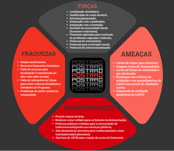 Os objetivos estratégicos do POSTRAD para o quadriênio 2021-2024 estão alinhados com os objetivos da Universidade de Brasília, expressos nas diretrizes institucionais consolidadas no Mapa Estratégico 2018-2022, e com a ficha de avaliação da Área 41 – Linguística e Literatura da CAPES.